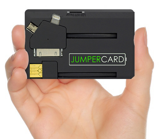 Santa Barbara, CA - A team of tech savvy entrepreneurs in Santa Barbara, California are raising funds to develop the latest version of a portable phone charger called the Jumper Card. About the size of a credit card, the device bills itself as the Swiss Army Knife for phones because of all the features it provides and its small size. Unique among portable chargers, the Jumper Card includes multiple charging connectors, asynchronous data transfer, SD card data-storage and its own internal battery.